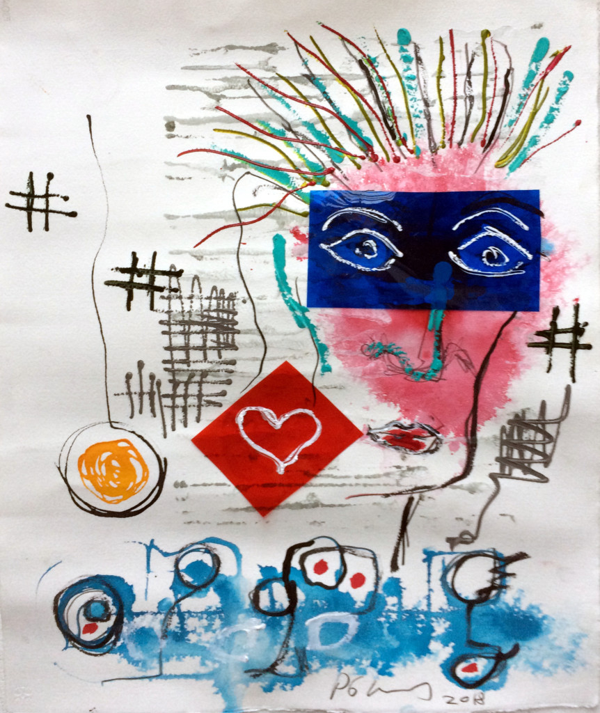 Hashtag Heart (small), 50 x 70cm, mixed media on paper, 2016
