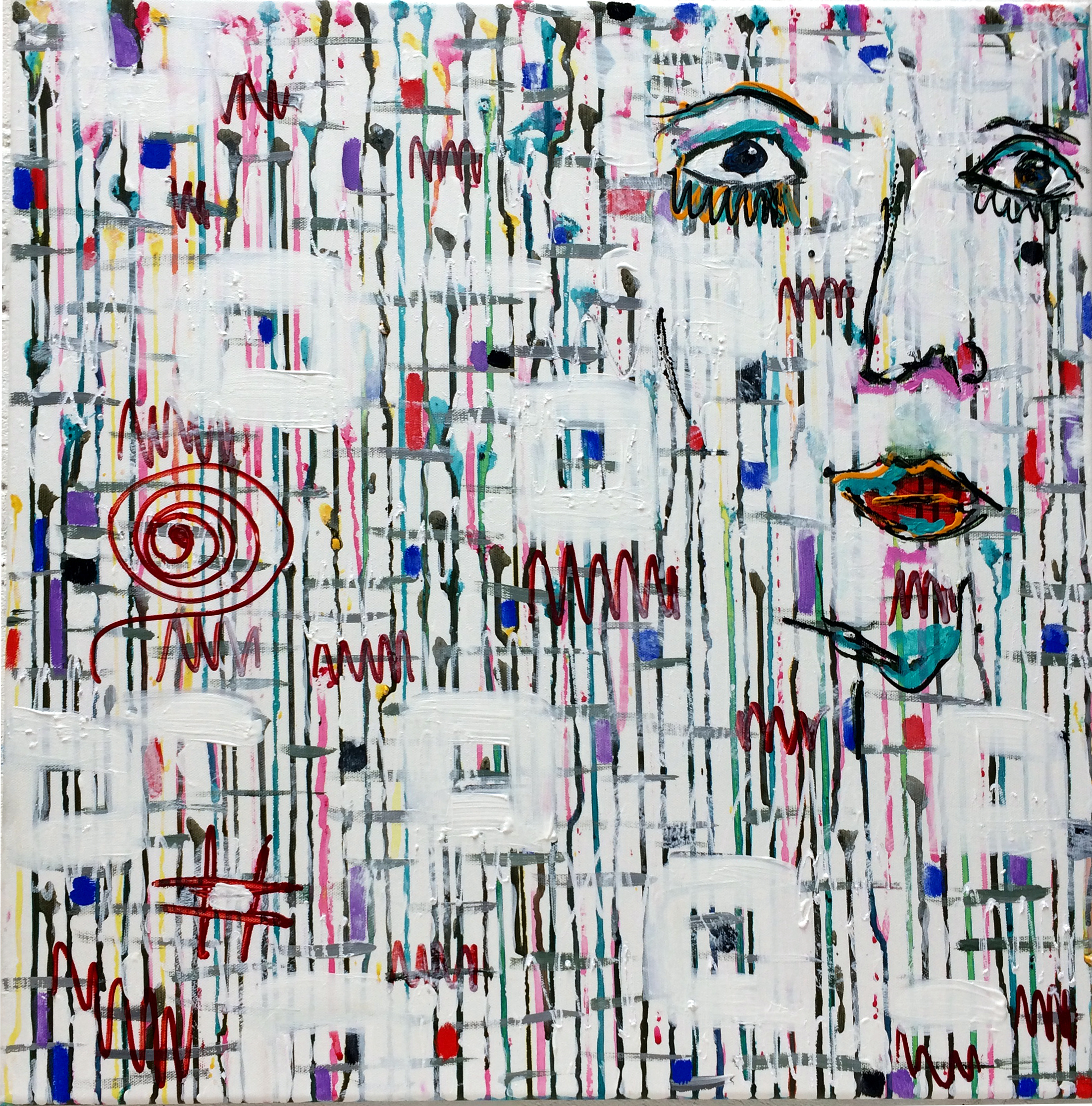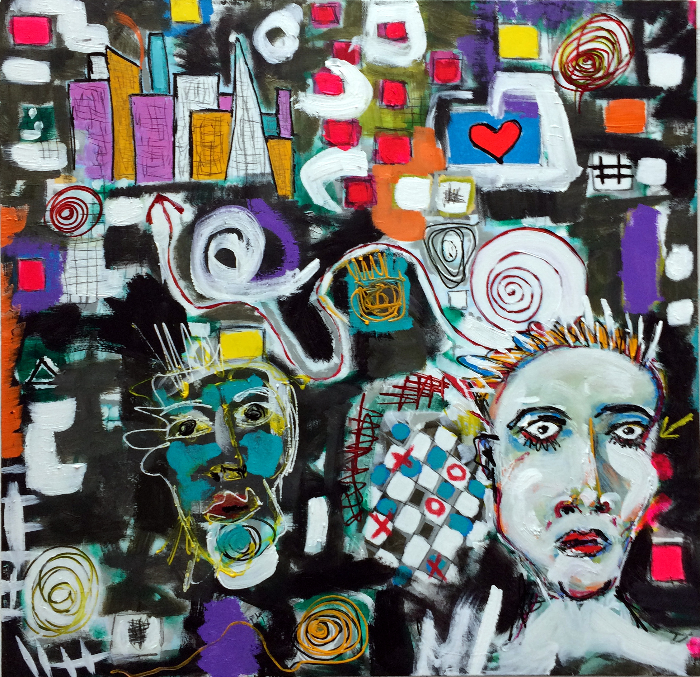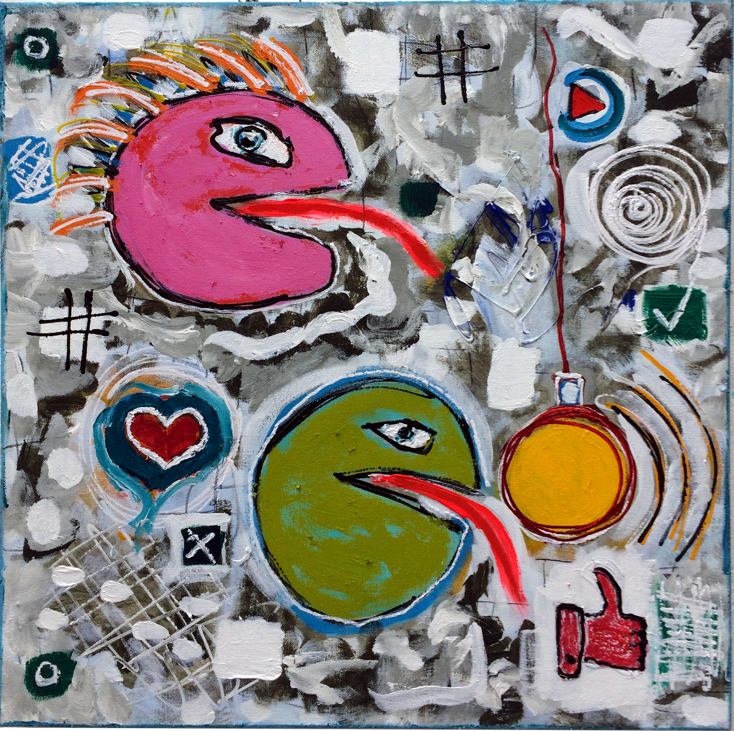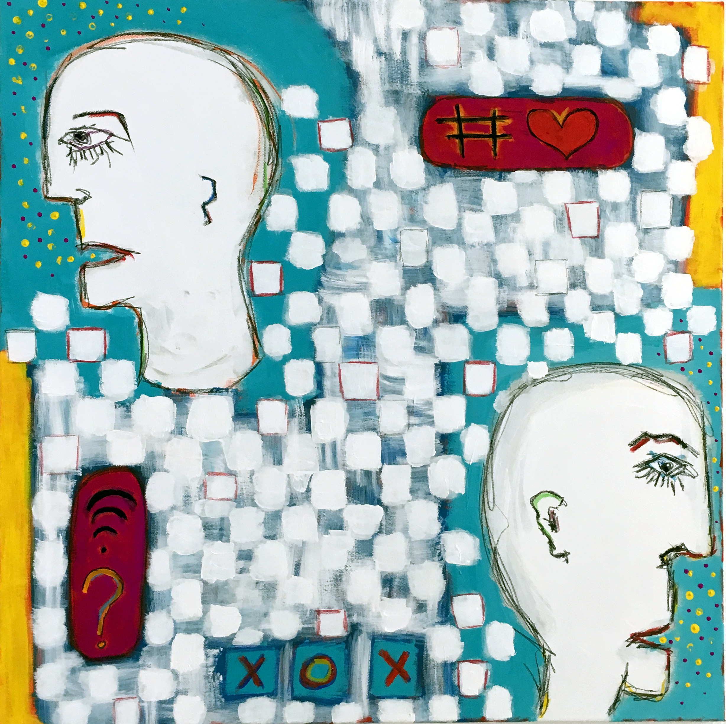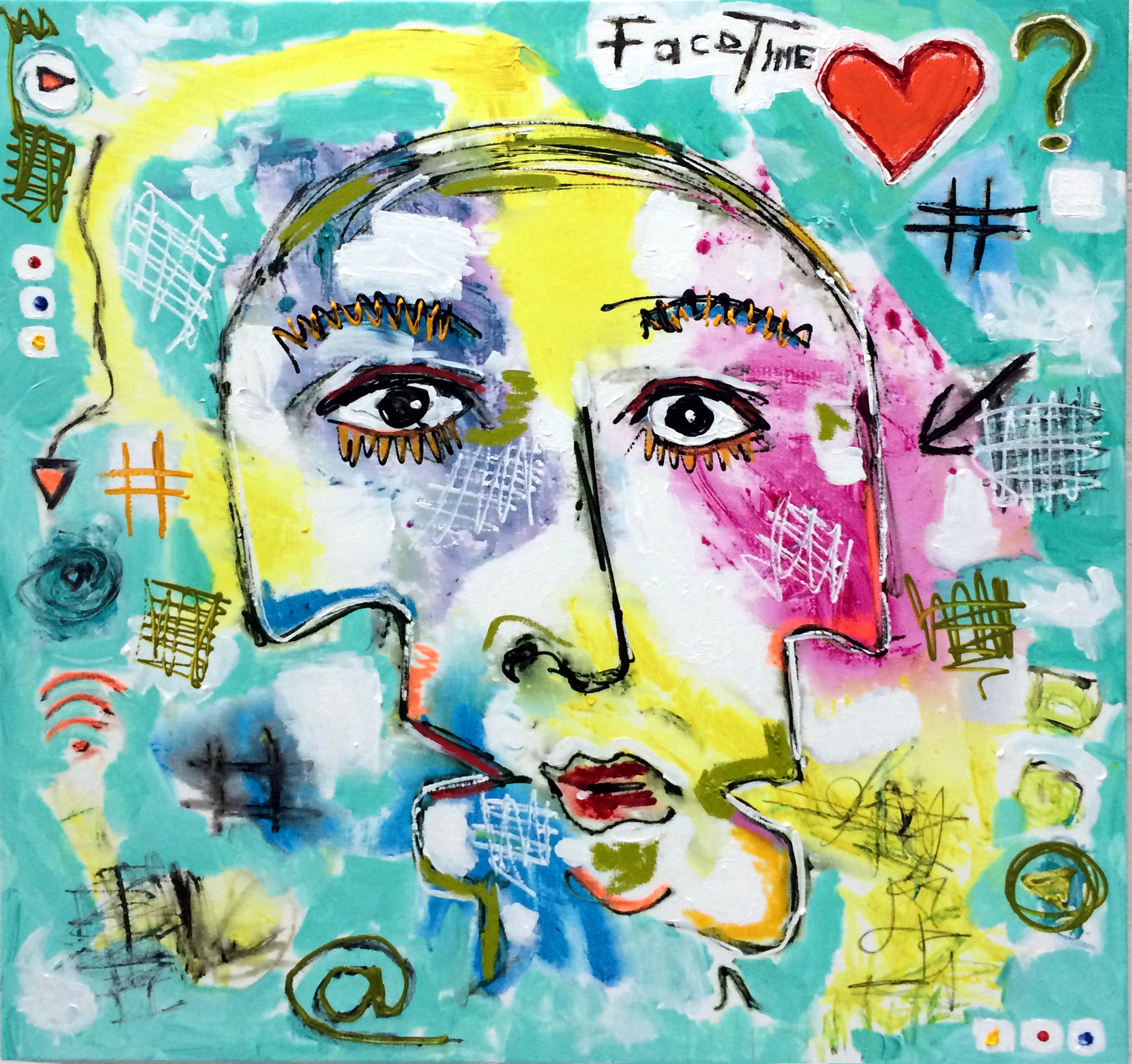 FaceTime, 60 x 60cm, mixed media on canvas,