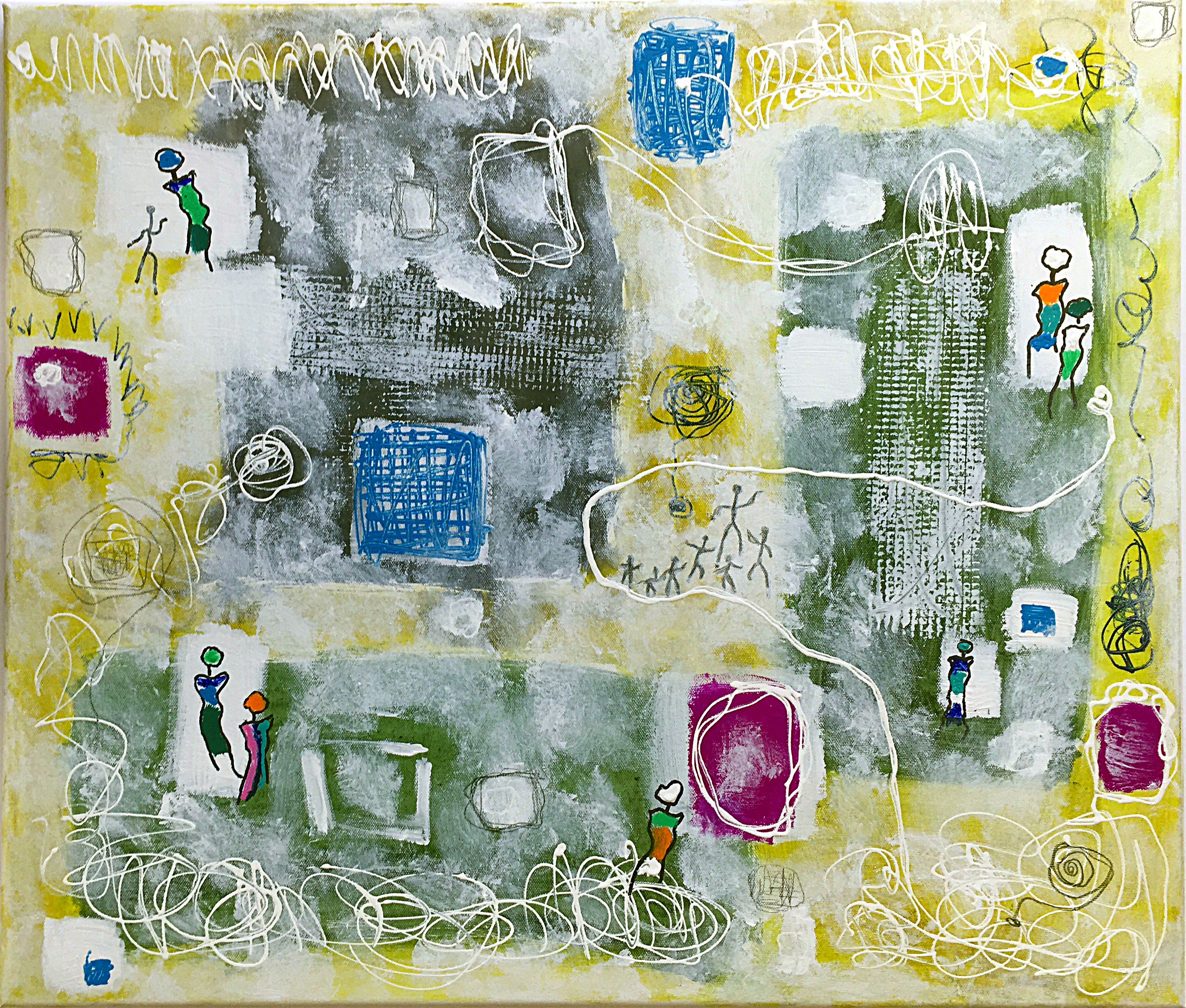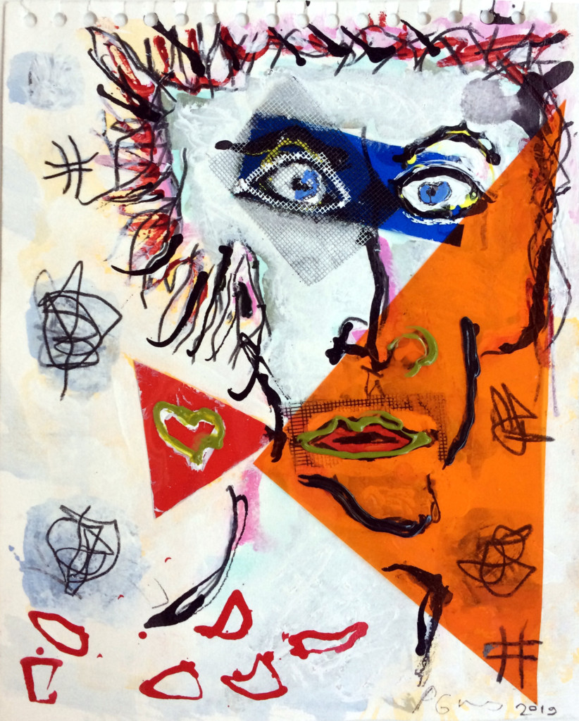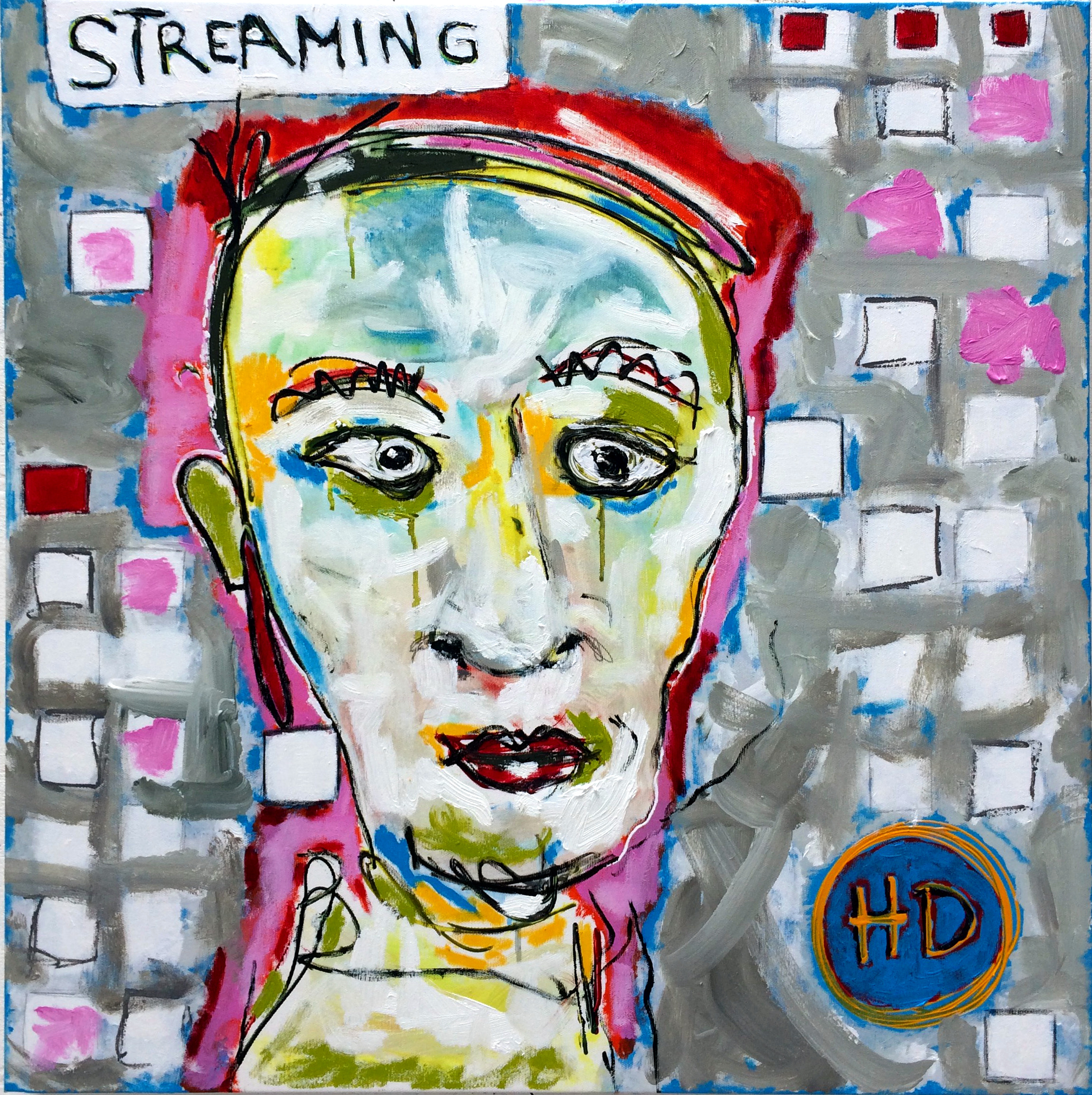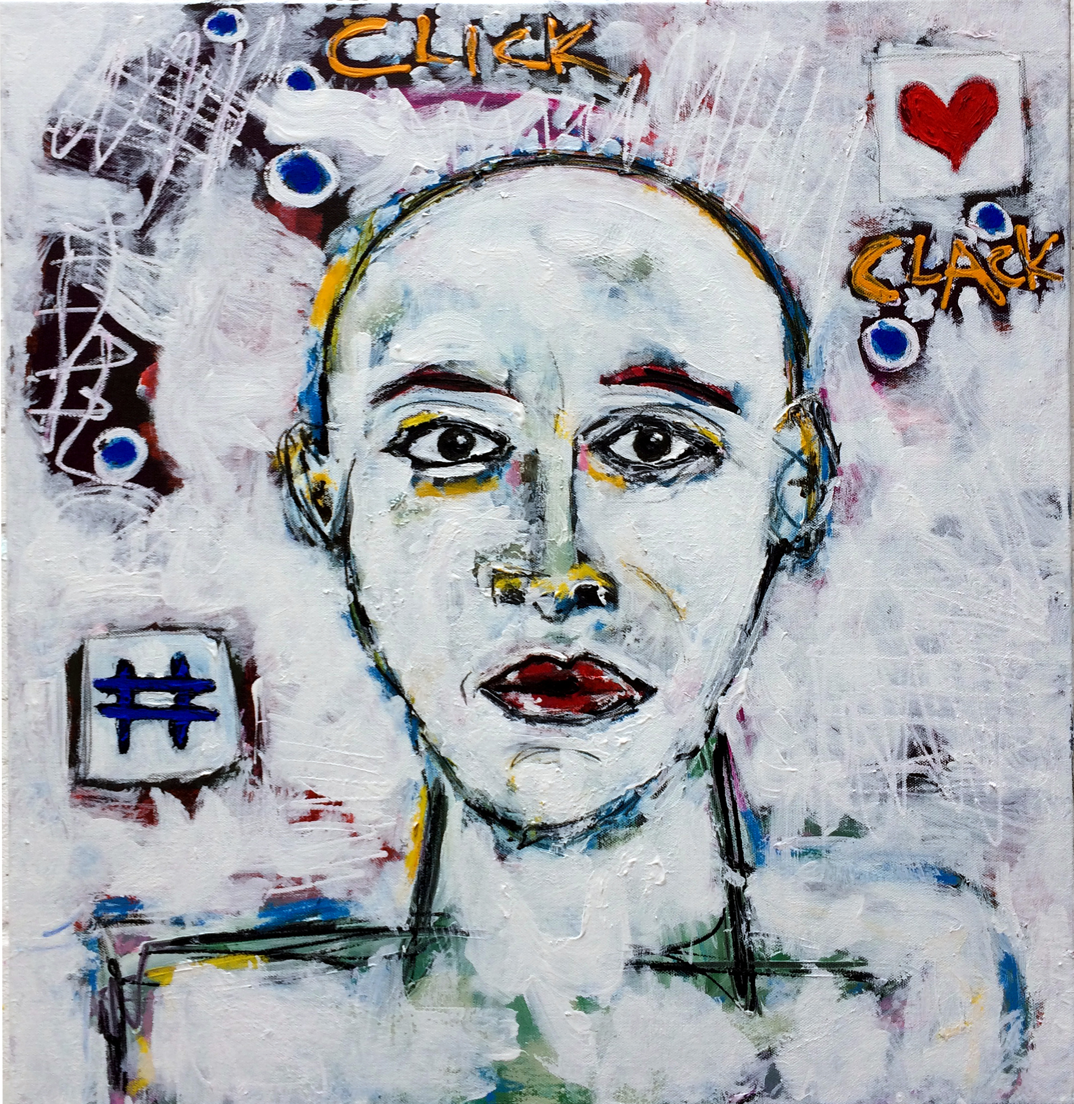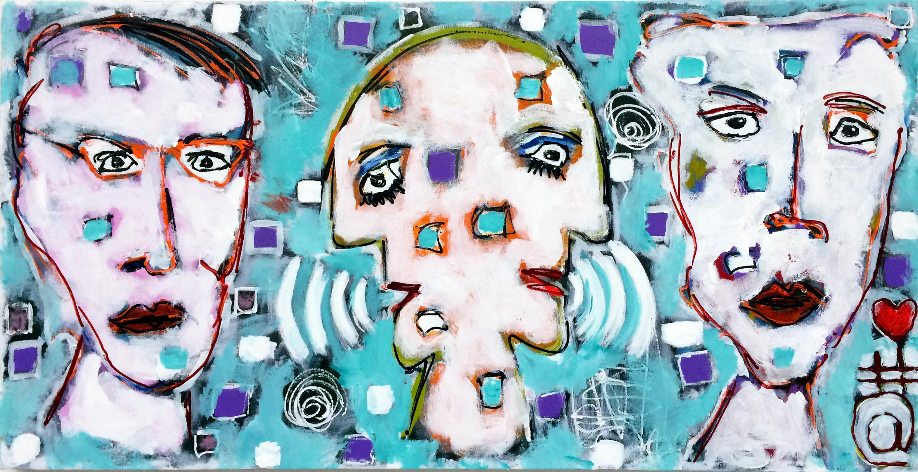 FaceTime, 60 x 60cm, mixed media on canvas,