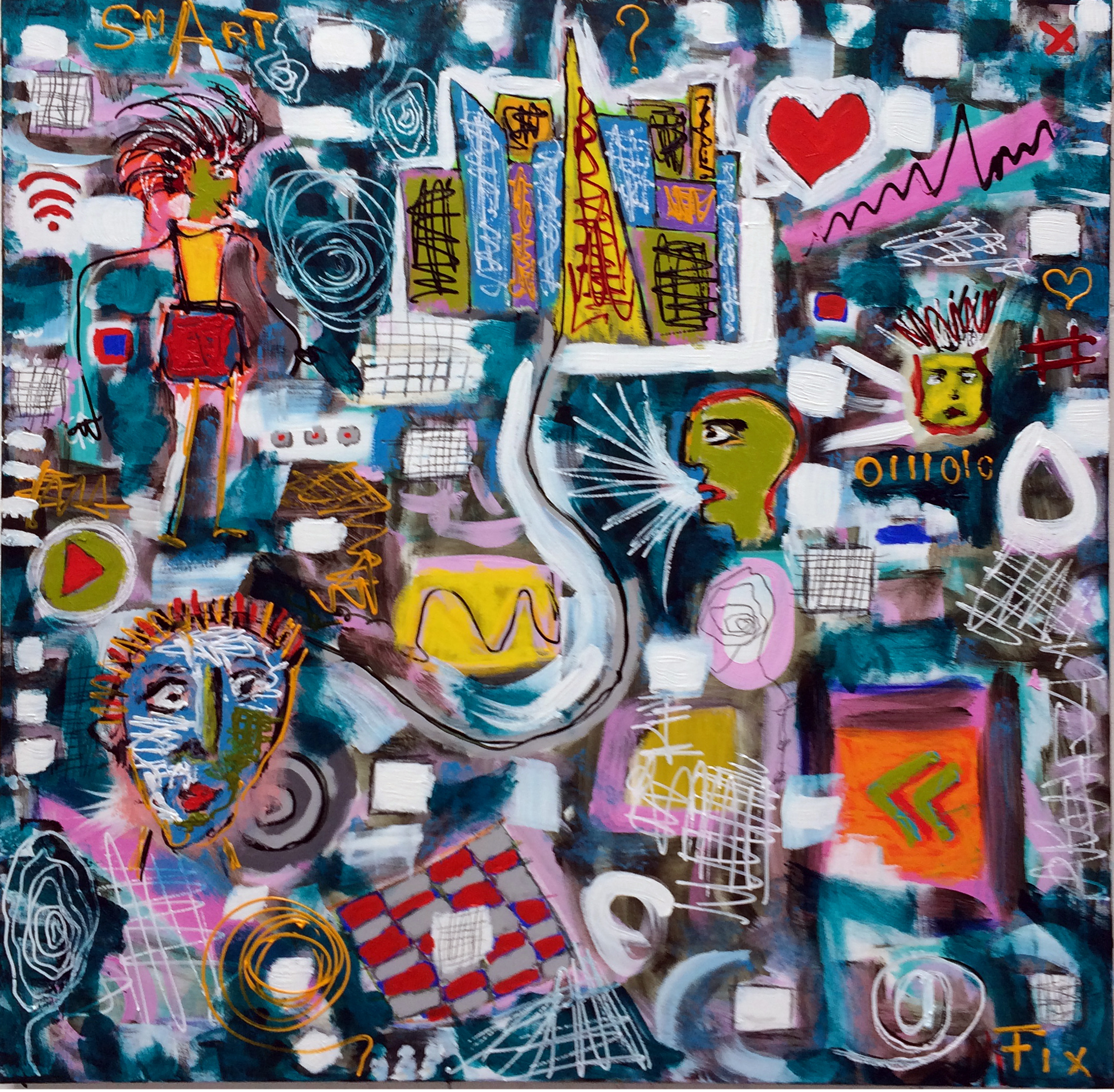 Meta Data, 100 x 120cm, mixed media on canvas, 2016