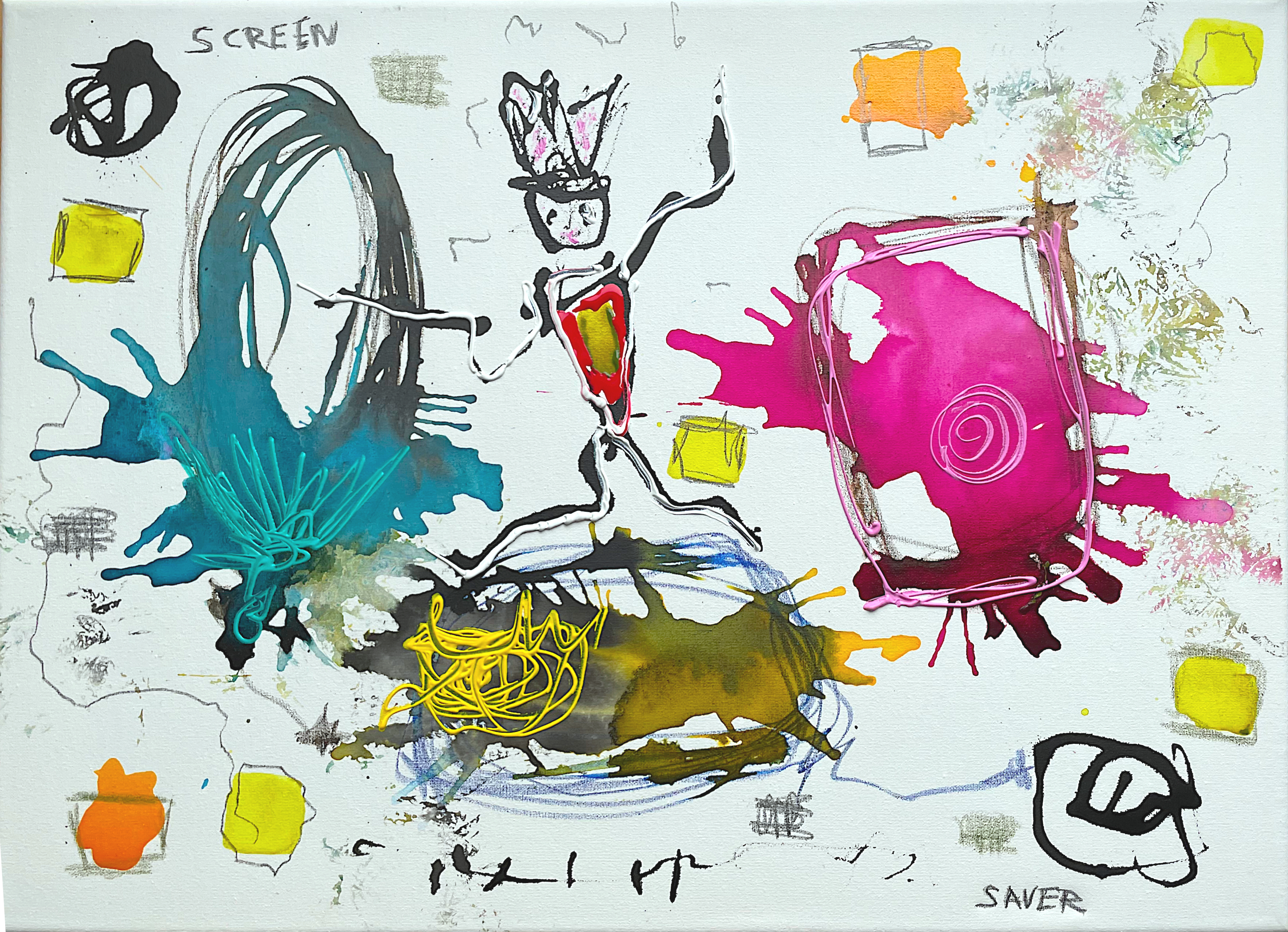 Switch On/Off, 60 x 60cm, mixed media on canvas,
